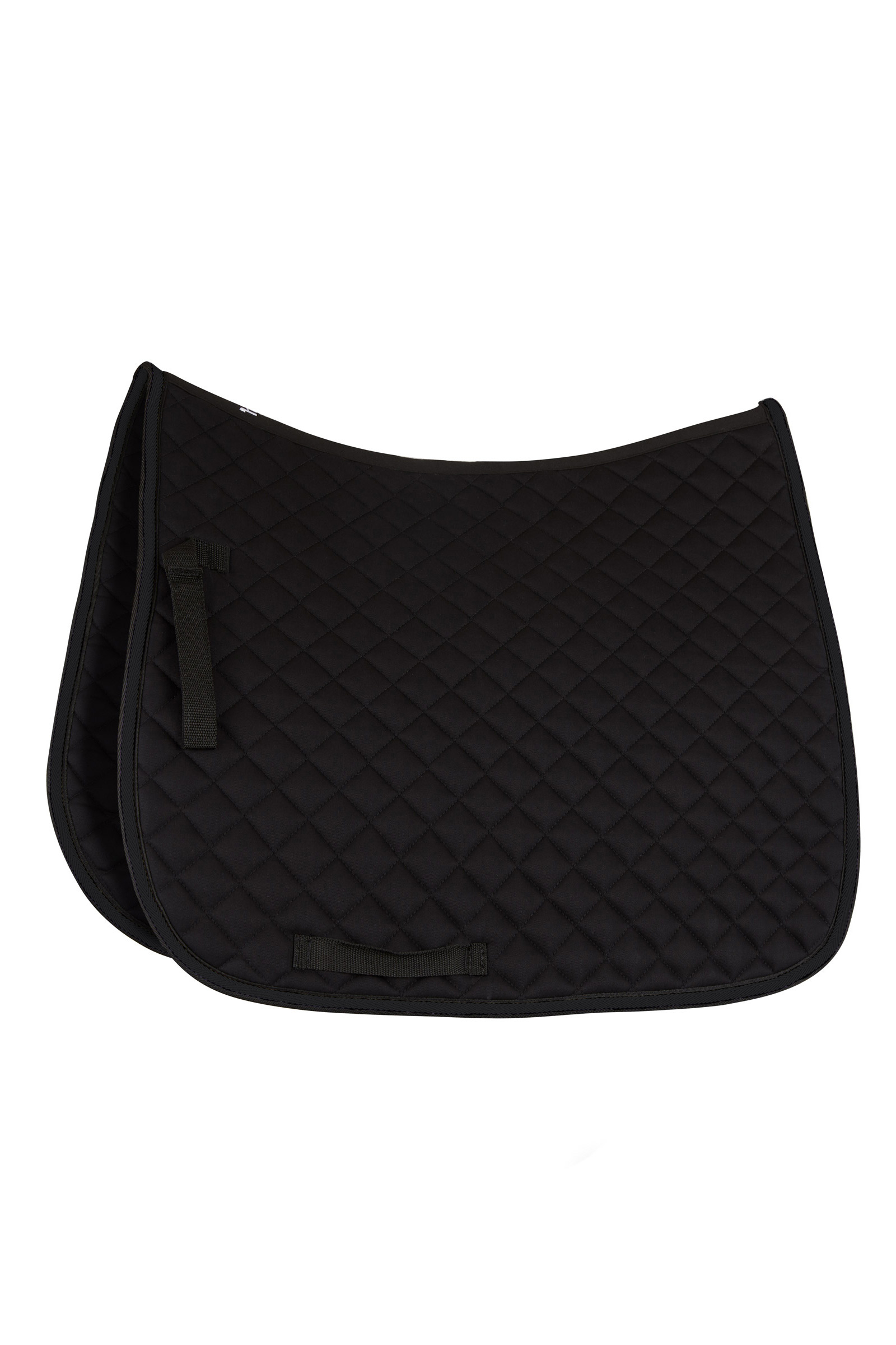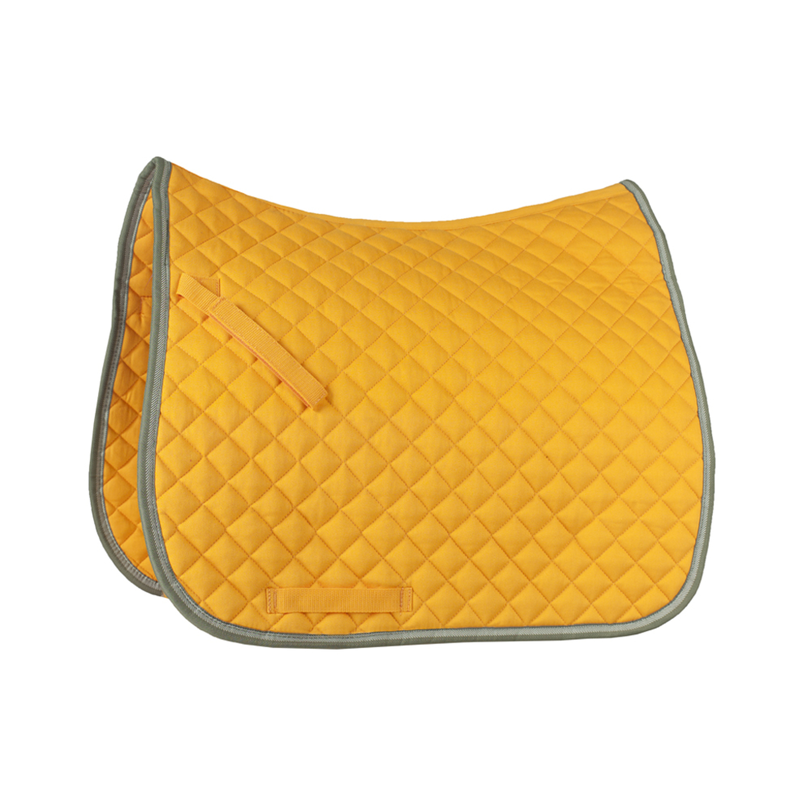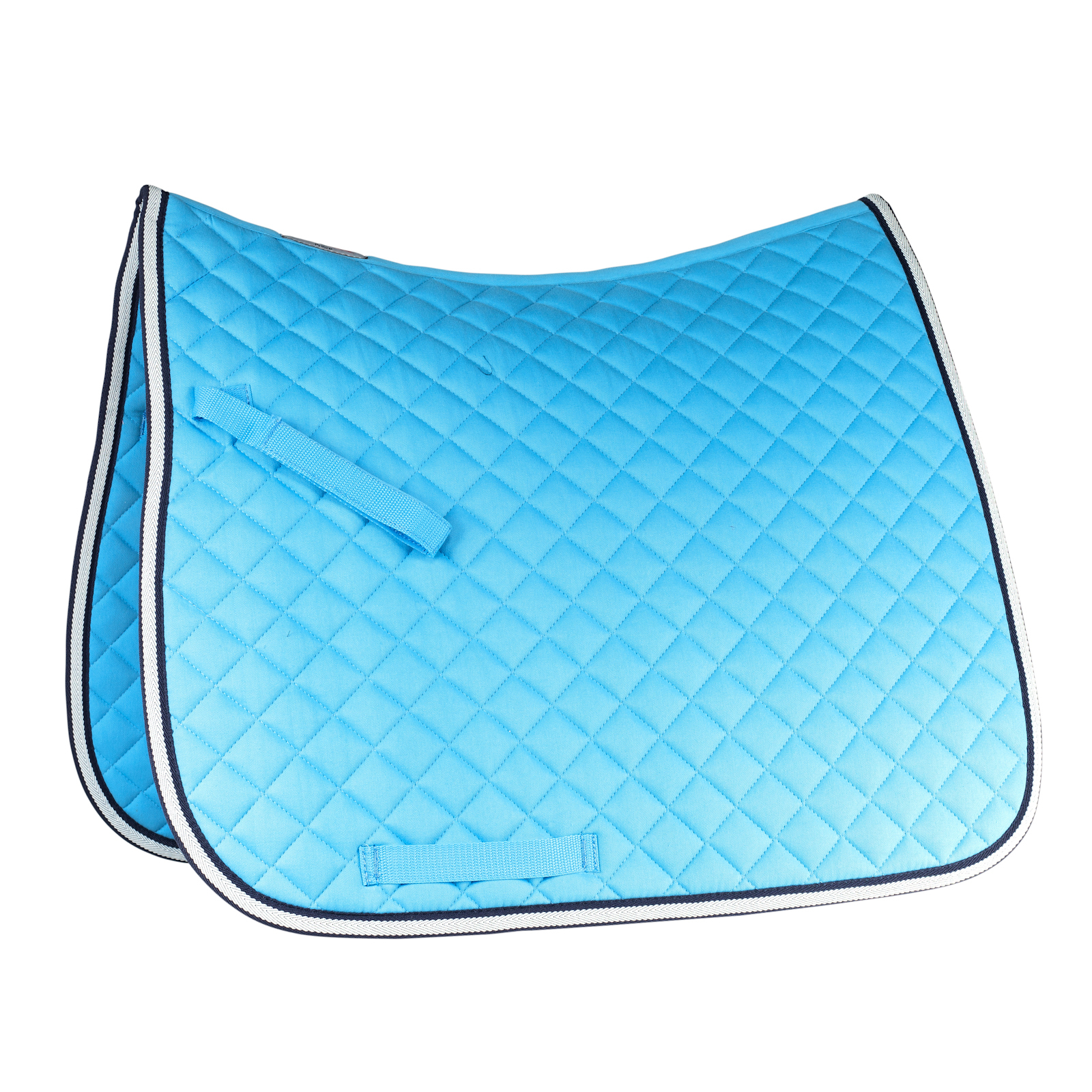 This lightweight, dressage saddle pad is functional with a simple, clean design. The contrasting piping adds a finishing touch to this quilted pad with diamond shaped design. Hook and loop fasteners as attachments at girth and billets keep the pad in place during any athletic activity. The padding has just enough fill for close contact with gentle support.