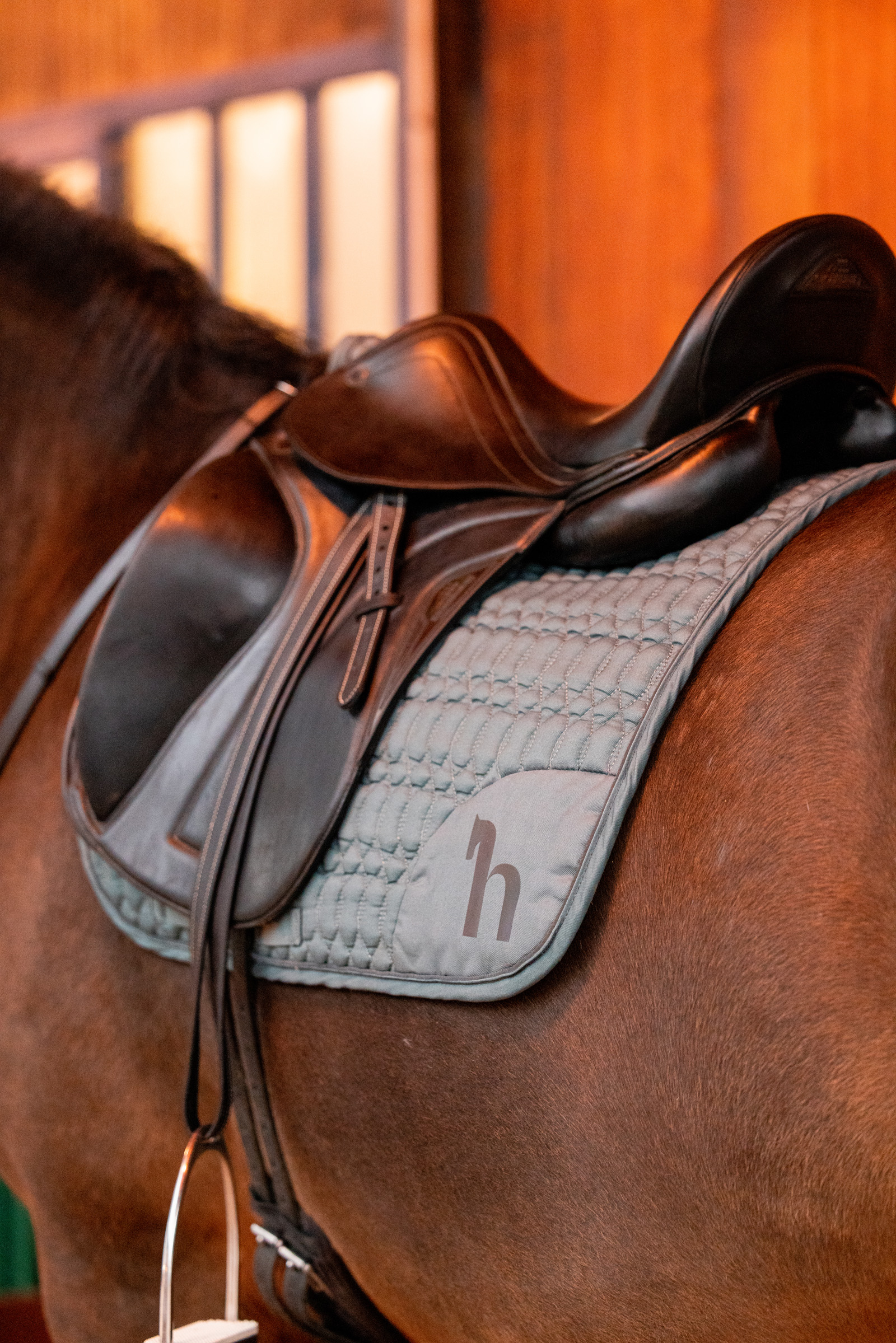 - Iridescent Horze logo details and piping