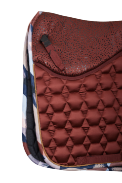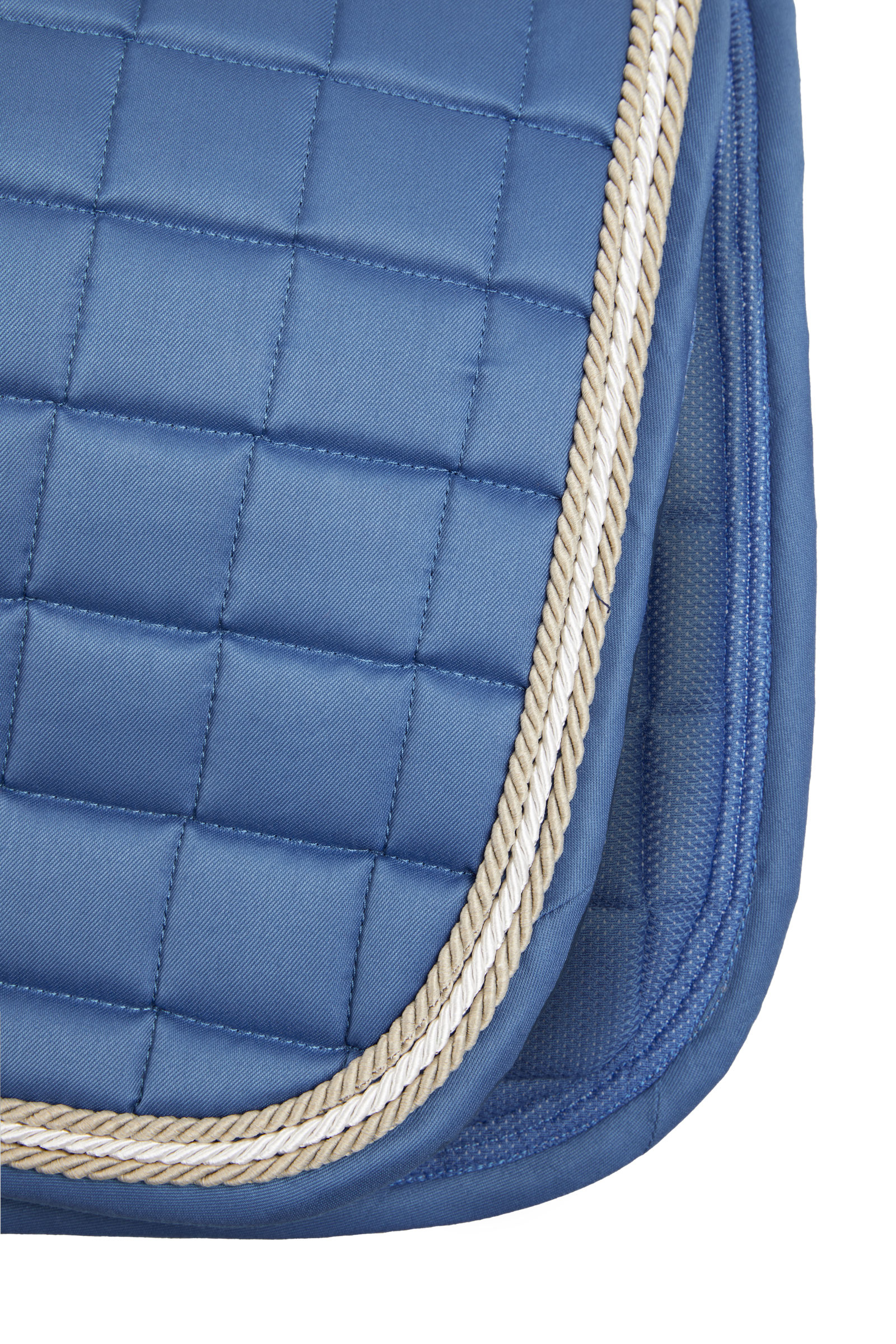 The edge of this all purpose saddle pad is trimmed with three rows of cord for a high-quality, sporty look. The high-cut withers add comfort and the moisture-wicking fabric keeps your horse dry and comfortable. The small square quilting adds a nice look while the foam-lined pad cushions your ride. Hook-and-loop fastener straps hold the saddle pad in place and a girth strap with the Horze emblem is stitched into place to keep your saddle from slipping.