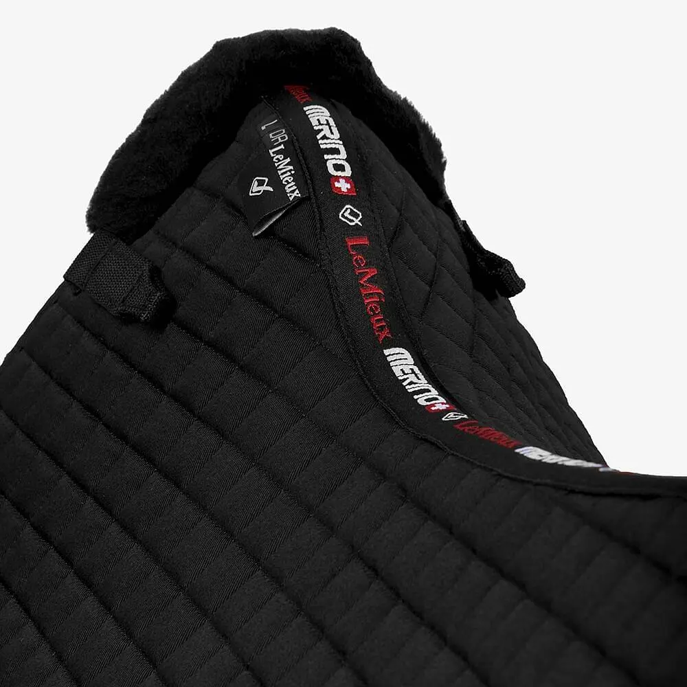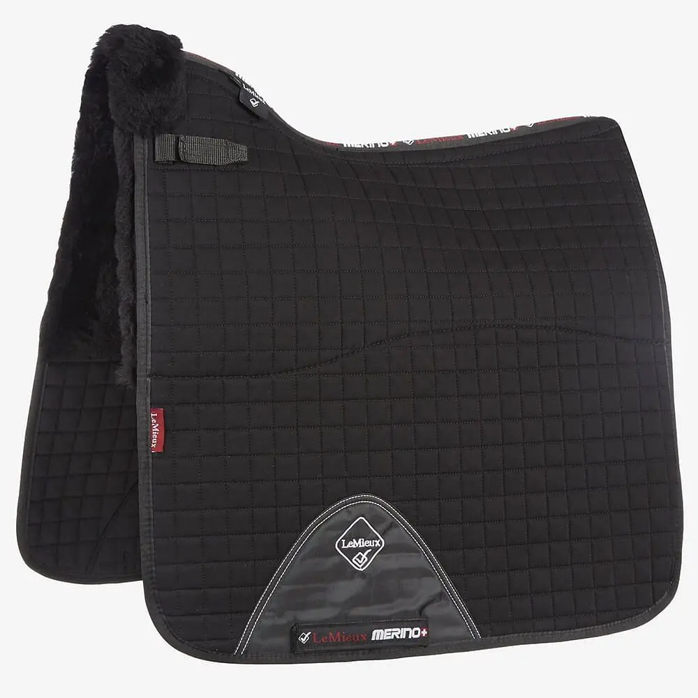 The LeMieux Merino+ Half Lined Dressage Saddle Pad is a high-quality dressage square, which looks extremely smart while providing your horse with maximum comfort. This dressage saddle pad is a half lined style, and this lining is made from the finest 100% natural Australian Woolmark accredited Merino Lambswool.