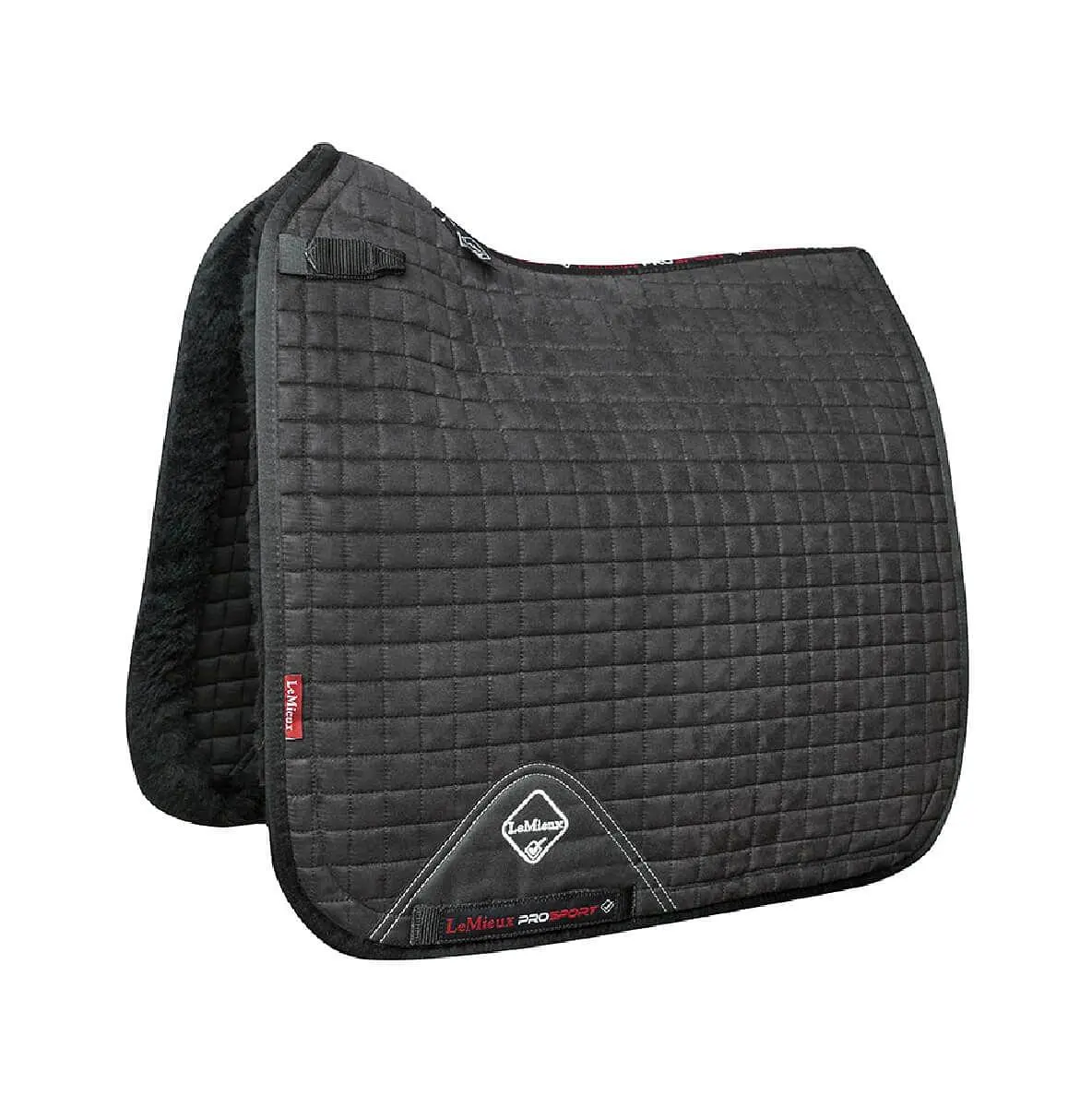 The LeMieux Merino+ Sensitive Skin Dressage Saddle Pad is available in Black/ Bennetoon, Black/ Navy, Blackcurrant/ Black, Grey/ Gret. Hunter Green/ Grey, Mulberry/ Grey and Natural/ White.