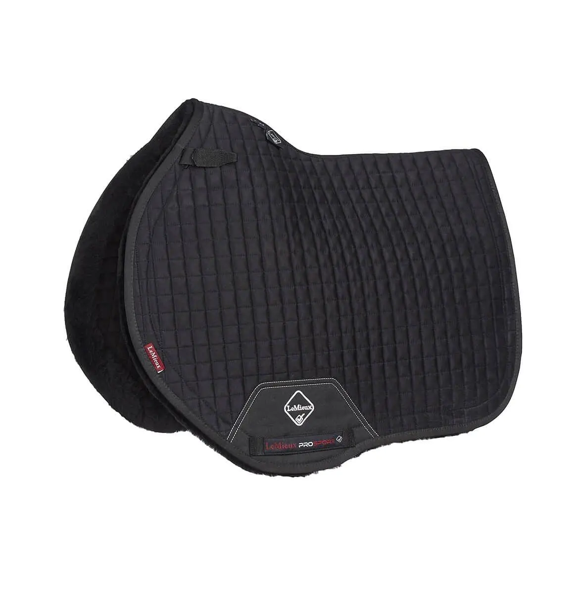 The LeMieux Merino+ Sensitive Skin Euro Jump Saddle Pad is available in Black/ Black, Natural/ White and Navy/ Black.