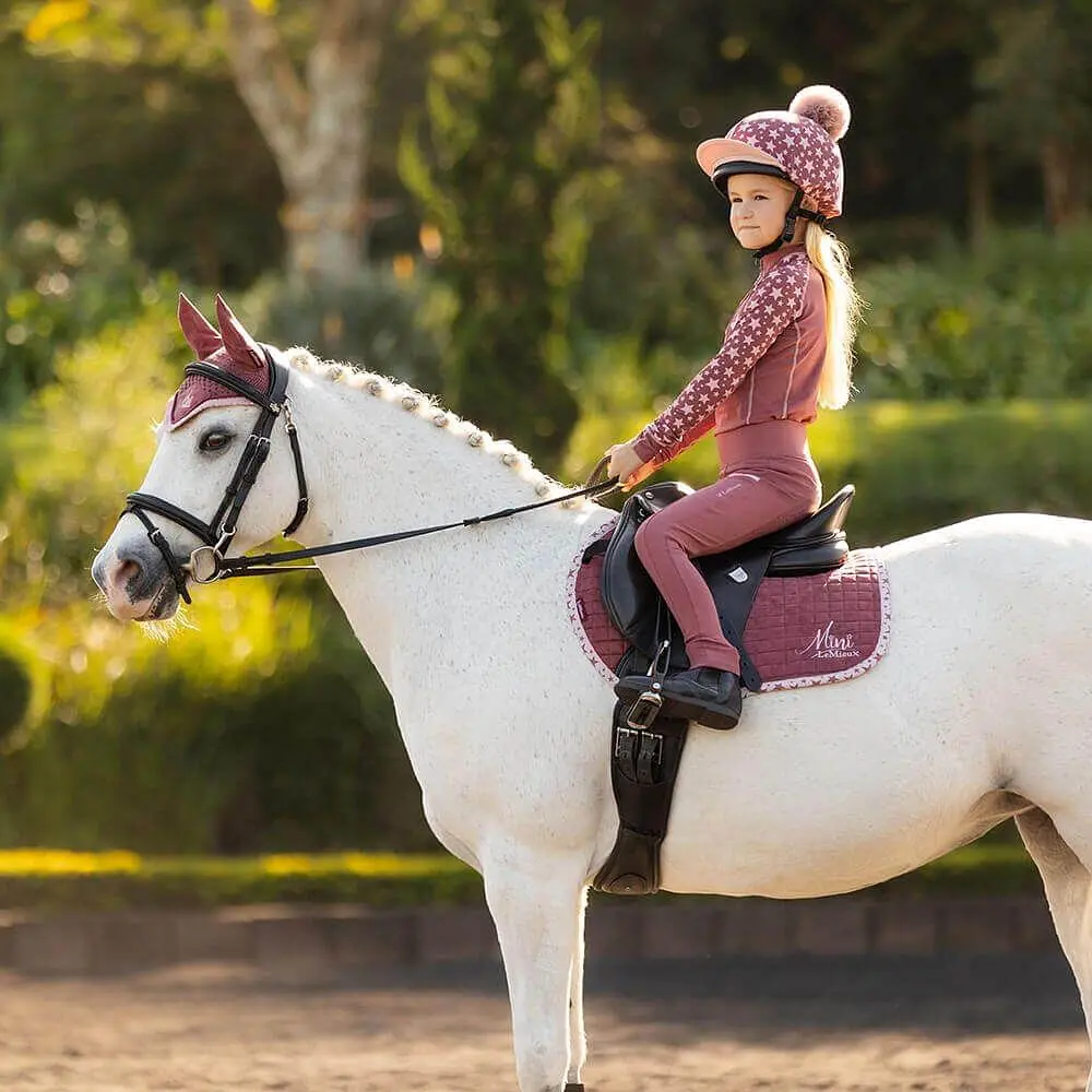The LeMieux Mini Suede Close Contact Saddle Pad Orchid is the latest new LeMieux colour for AW23. This pretty pink shade will look smart on a range of colours of ponies, and will perfectly complement the matching range of LeMieux mini orchid hat silks, base layers, brushing boots and fly hoods. The Mini Close Contact square is made with a bamboo lining to wick away moisture to keep ponies cool, as well as a fun star design binding which is unique to the mini range.
