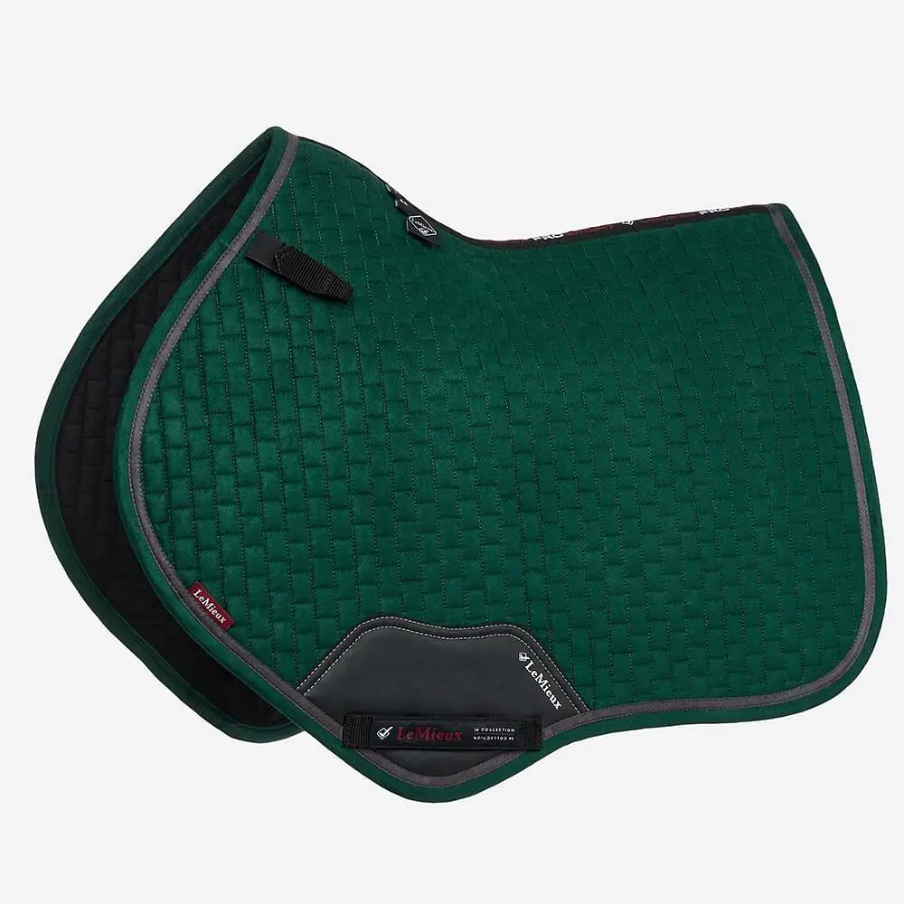 The LeMieux Suede Close Contact Saddle Pad Spruce is a comfy close contact square which has been updated for AW23 in LeMieux’s latest colour – Spruce. This CC pad is made with a sweat-wicking bamboo lining and a soft suede binding to minimise friction and ensure optimum comfort. The close contact cut of this pad will help it to neatly sit under your jumping saddle. Team with matching LeMieux Spruce hat silk, base layer and fly hood for a winning matchy matchy look.