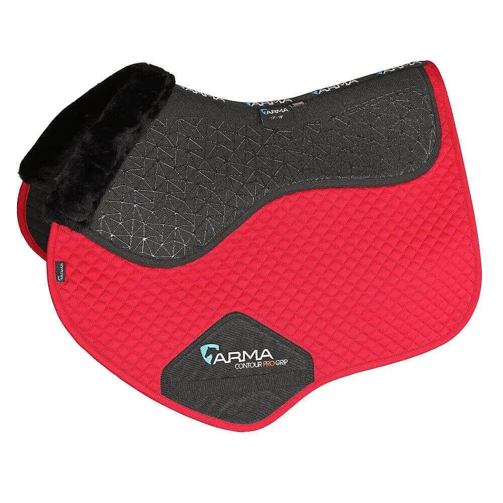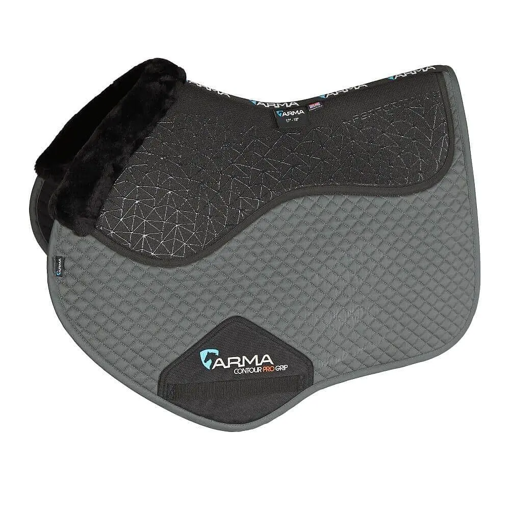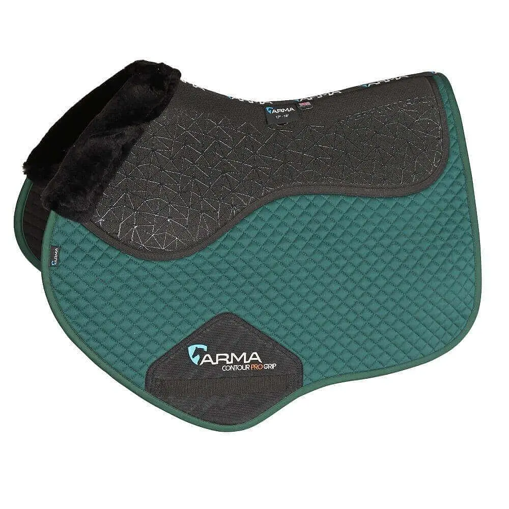 The Shires ARMA Fusion Jump Saddle Pad is the ultimate high-performance saddle pad featuring a silicone grip and a shock absorbing lining formulated and cut for excellence. The Fusion Jump Saddle Pad combines a specially designed grip printed silicone seat with a shock absorbing soft grip half lining. Made from a breathable, stay-smart, anti-pill 100% cotton outer with a SupaFleece luxurious trim for optimum comfort and durability.