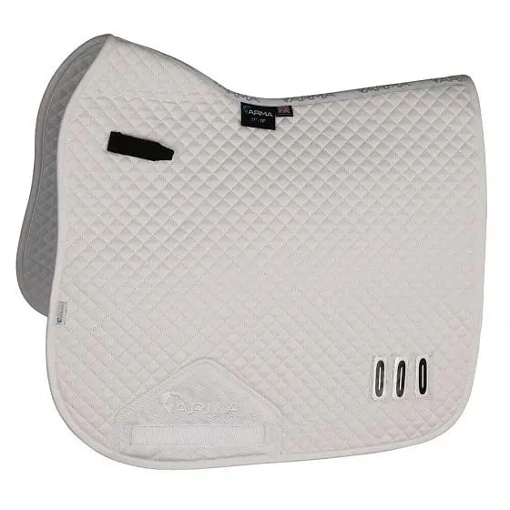 The Shires ARMA Numbered Dressage Saddle Pad is a must-have for the competition season. The Numbered Dressage Saddle Cloth features an integrated clear pocket on both sides of the pad for displaying your competition numbers. The ARMA Saddle Pad is made from a quality, breathable, anti-pill 100% cotton outer and features an Ultra Dry Zone lining designed to instantly wick away sweat from the horse and reduce the risk of rubbing in the competition ring. The ARMA Saddle Pad comes complete with the numbers included for easy interchanging between classes and events.