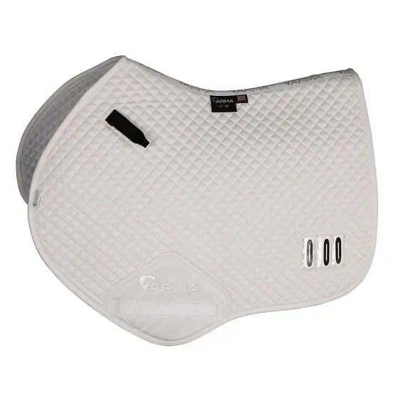 The Shires ARMA Numbered Jump Saddle Pad is a must-have for the competition season. The Numbered Jump Saddle Cloth features an integrated clear pocket on both sides of the pad for displaying your competition numbers. The ARMA Saddle Pad is made from a quality, breathable, anti-pill 100% cotton outer and features an Ultra Dry Zone lining designed to instantly wick away sweat from the horse and reduce the risk of rubbing in the jumping ring. The ARMA Saddle Pad comes complete with the numbers included for easy interchanging between classes and events.