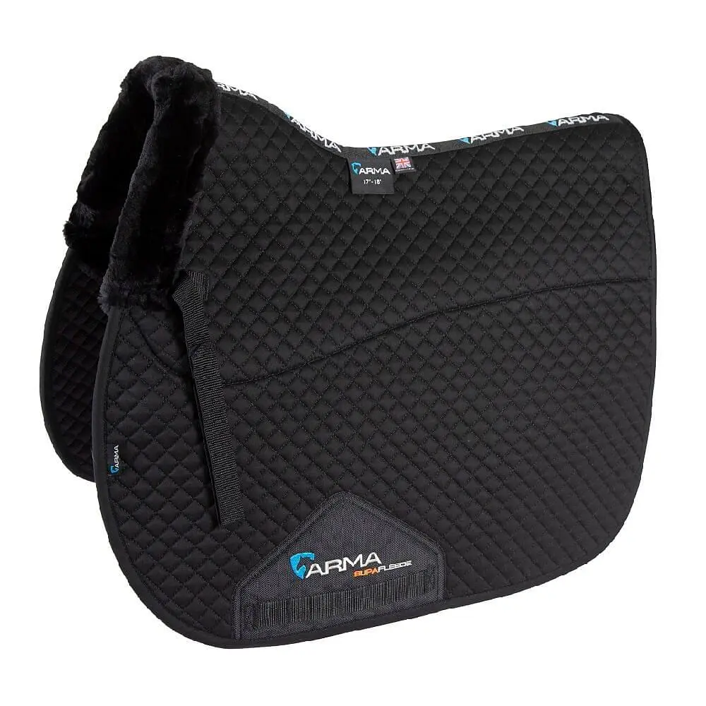 The Shires ARMA SupaFleece Saddle Pad is the ultimate high-performance saddle pad featuring a contact fit and a SupaFleece lining formulated and cut for excellence. The ARMA Saddle Pad combines a deep ProComfort SupaFleece trim to increase airflow, relieve pressure and control moisture with an Ultra Dri Zone lining to wick sweat from the horse and reduce the risk of rubbing. The Shires ARMA SupaFleece Saddle Pad is a must-have for any equestrians horsey wardrobe.